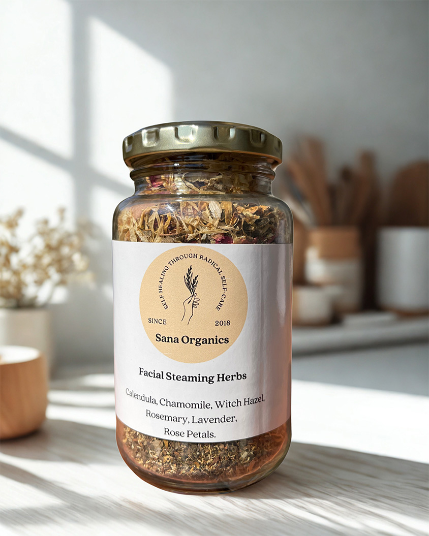 Our Facial Steaming Herbs are carefully curated to open your pores, deeply cleanse the skin, and promote a natural, healthy glow. This botanical blend helps to soften impurities, boost circulation, and calm inflammation—making it the perfect companion for radiant, balanced skin.