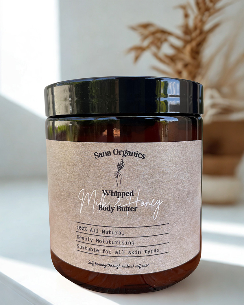 Wrap your skin in the creamy comfort of nature’s most timeless ingredients. Sana Organics’ Milk & Honey Whipped Body Butter is a deeply nourishing blend, handcrafted to restore softness, enhance hydration, and leave your skin feeling velvety smooth from head to toe.